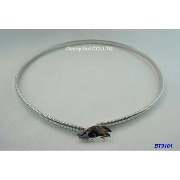 Metal Plated Rhodium Skinny Waist Belt Fastener with Covered Buckle 36 Inch Images |